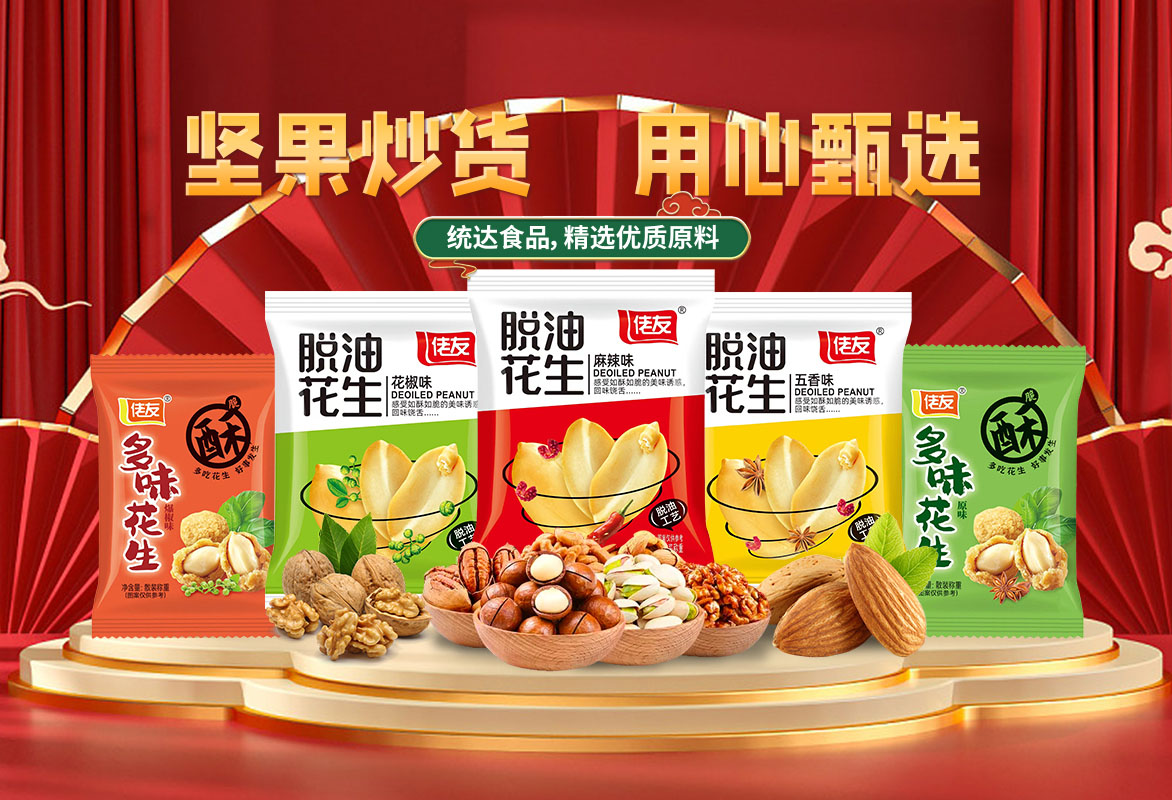 洛陽市統達食品有限公司創建于2013年,坐落于風景秀麗的嵩山腳下,東依省會鄭州、隴海、焦枝兩大鐵路在此交匯,西連高速,洛界高速,縱橫東西南北,207國道,交通便利。當地環境優美。經濟繁榮昌盛,實為興業辦企,鴻運福順的好地方。少林寺,白馬寺,龍門石窟,玄奘故里等名勝古跡星羅棋布,近在咫尺,盡展千年華夏文明?! ∥覐S是一家集生產,研制,銷售為一體的食品加工企業,總投資1500萬元,廠房占地面積5000平方米,員工100余人,其中技術人員20余人,年加工能力達1500余噸。公司以堅果炒貨為主導,自主三大品牌:統達牌、紅仁館牌、佬友牌和授權品牌速達,主要產品有酒鬼花生系列,麻辣花生系列,香辣酥系列,果仁裹粉類系列,怪味胡豆系列,蠶豆、青豆系列等多個品類。產品暢銷全國各地,深受用戶好評。產品選自上等原料經多次精選而制,秉承濃郁的特色風味,保留其原材料的營養和原汁原味,富含不飽和脂肪酸和人體必需的氨基酸和鋅元素,不含膽固醇,黃曲霉素,不添加防腐劑、著色劑;具有濃郁獨特的香味,是真正的“從土地到餐桌”的健康食品。產品特點:色澤金黃,顆粒飽滿,然后經多種工藝加精良的天然配料精制而成,鎖生產出來的產品既保持著產品的獨到的口味,又不失產品天然的營養成分,滋味純正,辣椒鮮紅食之麻,辣,香,酥,甜,口感獨特,食后滿口生香,欲罷不能。久食不厭,老少皆宜,居家旅游,佐食配茶,宴賓饋友之佳品,深受廣大顧客歡迎和贊揚?! ∥覀儗⒁跃康墓に?,科學的管理,嚴格的質量控制,優異的品質保障,以誠信,創新,勤奮,求實的企業精神,立于強者之林,迎接新的挑戰。以飽滿的熱情迎接與你的合作?! ”竟尽耙再|量求生存,以誠信求發展”歡迎有志之士加入我們的團隊,攜手共創美好明天!